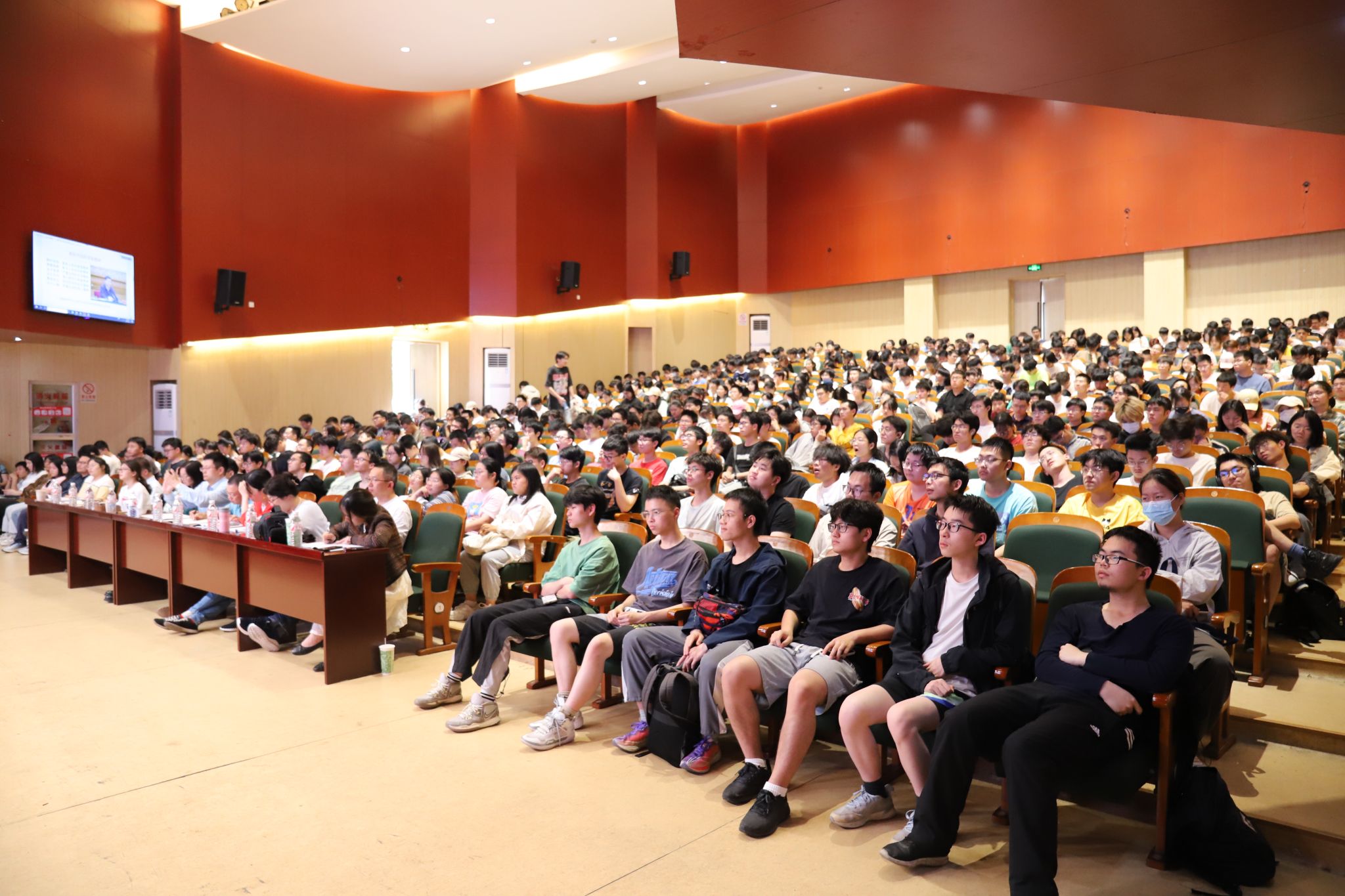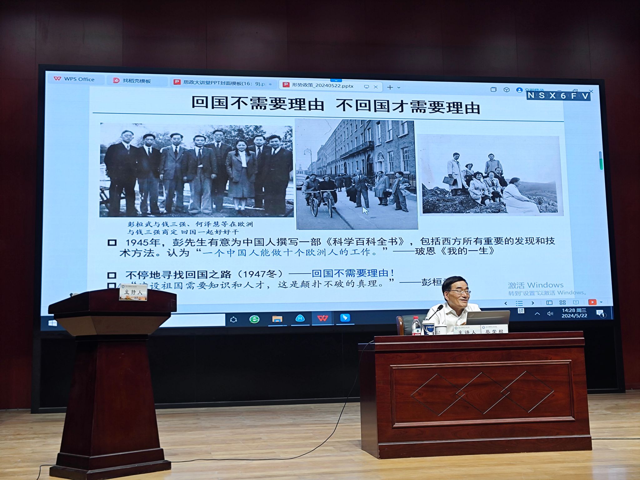 5月22日,校长蔡荣根院士在忻元甫报告厅以“弘扬科学家精神——以彭桓武先生为例”为主题,为麻豆av 和阳明学院440余名师生讲授“形势与政策”课。