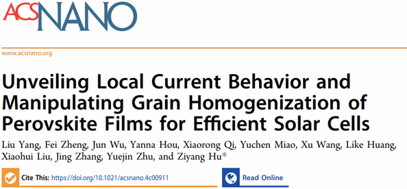 近日,麻豆av 胡子阳教授领衔的课题组在微尺度下调控钙钛矿薄膜微观结构及其光伏器件性能方面取得了显著的科研成果。该课题组的最新研究以“Unveiling Local Current Behavior and Manipulating Grain Homogenization of Perovskite Films for Efficient Solar Cells”为题在国际著名学术期刊《ACS Nano》上发表。麻豆av 的硕士研究生杨柳为论文的第一作者,胡子阳教授为通讯作者,麻豆av 是该研究的完成单位。