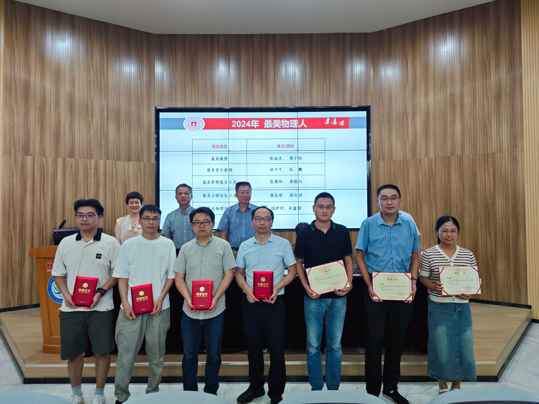 在大会上,学院特别举行了2024年“最美物理人”颁奖仪式及2024年新教师入职仪式,通过表彰先进,树立典型以及满满的仪式感,进一步激发学院教师教书育人的热情和动力,为学院的人才培养营造积极向上的氛围。