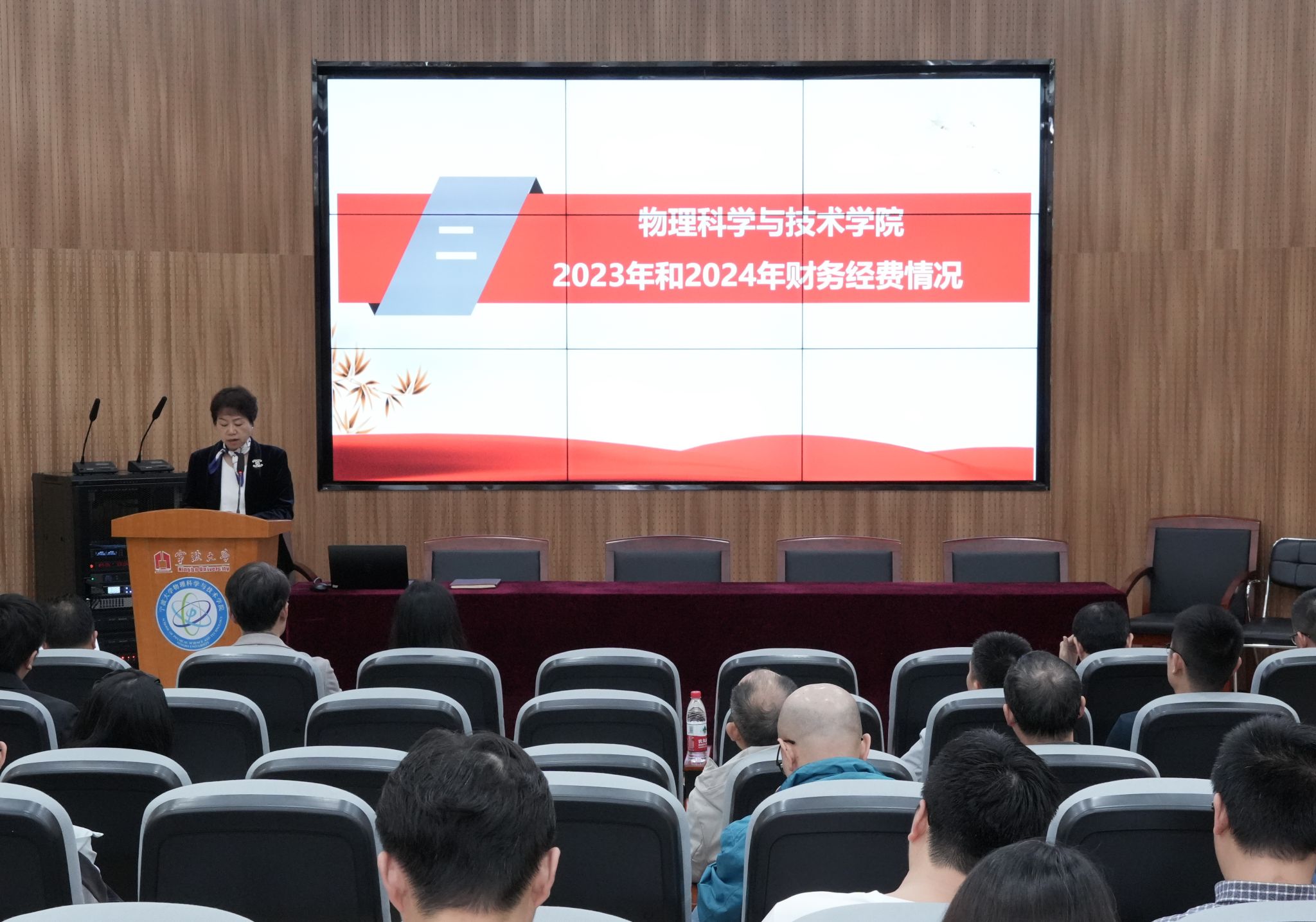 随后,执行院长段香梅向大会通报了学院2023年整体发展情况及2023年和2024年财务经费综合情况,她强调学院始终本着厉行节俭、量力而出的原则,编制历年预算,各项经费执行情况良好。学院发展成效有目共睹,离不开学院每位持之以恒的付出,希望各位代表们能继续保持对物理的这份情怀,为学院的发展献计献策,一起携手努力共创美好的明天。