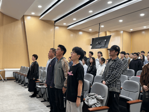 11月13日中午,在激昂的国歌声中,本次分党校培训结业仪式正式拉开帷幕,学院党委书记朱学庆、党委副书记刘小娣、组织员邵一鸣出席,团委书记张锡炜主持会议。院党委书记朱学庆对顺利结业的学员们表示热烈祝贺,强调党校培训是一次思想的洗礼、信念的锤炼,希望学员们牢记所学,将党的理论知识内化于心、外化于行。