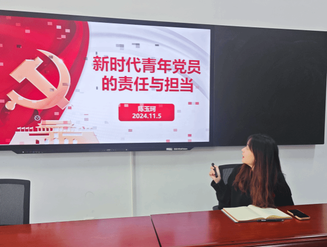 11月6日,学生党建辅导员陈玉珂老师以亲切的话语讲述了“新时代青年党员的责任与担当”,她通过讲述一个个感人至深的故事,分析当代社会面临的各种挑战和机遇,激励学员们勇担时代重任,在新时代的征程中绽放青春光彩。学员们深刻认识到作为新时代的青年,不仅要有远大的理想抱负,更要有脚踏实地的行动,积极投身到社会主义建设的伟大事业中去。