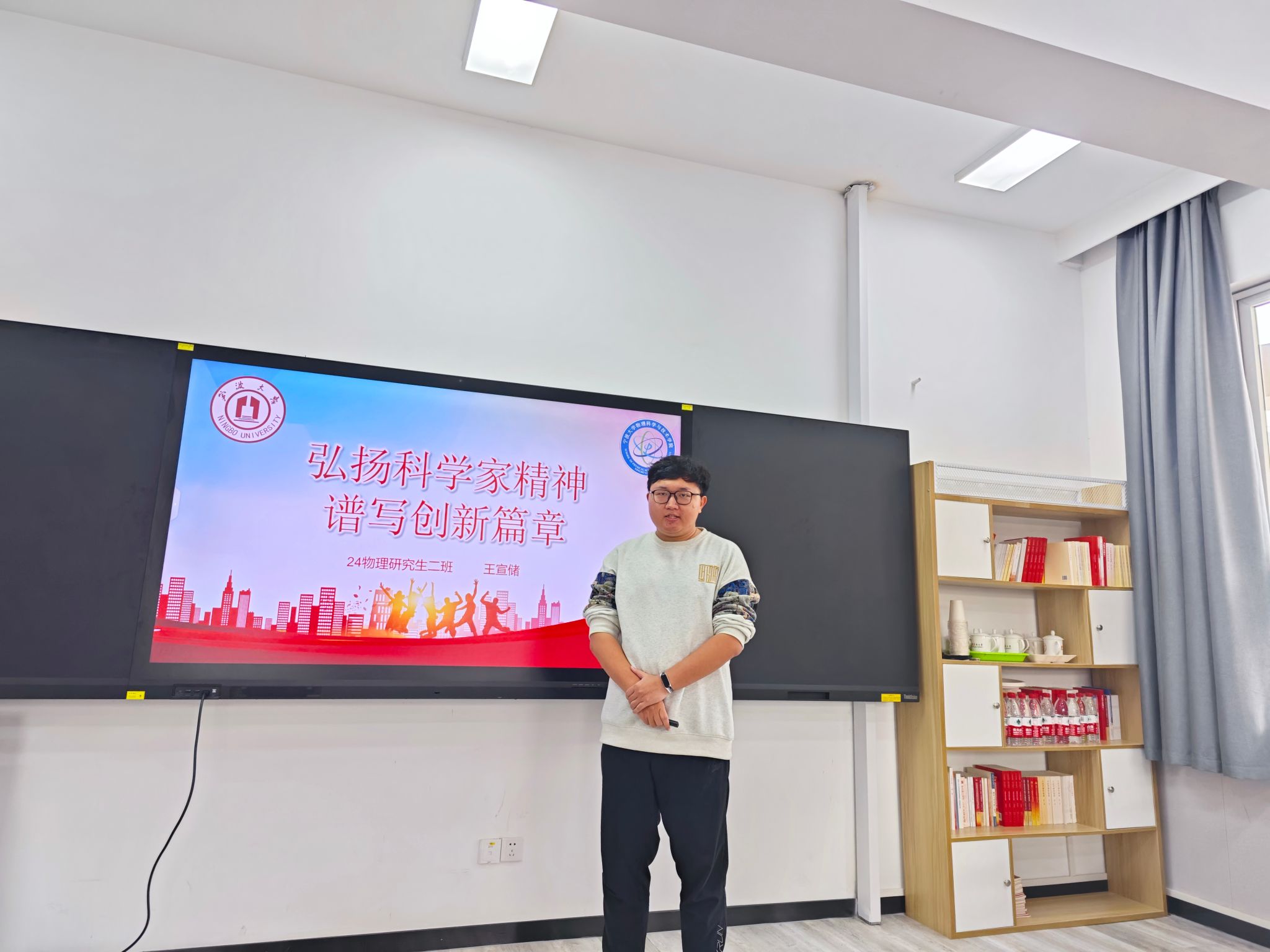 为全面学习贯彻党的二十届三中全会精神,积极响应弘扬科学家精神的号召,激发学院广大师生崇尚和传承科学家典范,麻豆av 于11月13日在龙赛理科楼北楼228“党员之家”举办首届“弘扬科学家精神”思政微课大赛复赛。经过初赛的激烈角逐,共有8位选手脱颖而出进入复赛。学院党委书记朱学庆、学院党委副书记刘小娣、学院党委委员陈达、物理系教师党支部委员王振洋、组织员邵一鸣担任复赛评委。