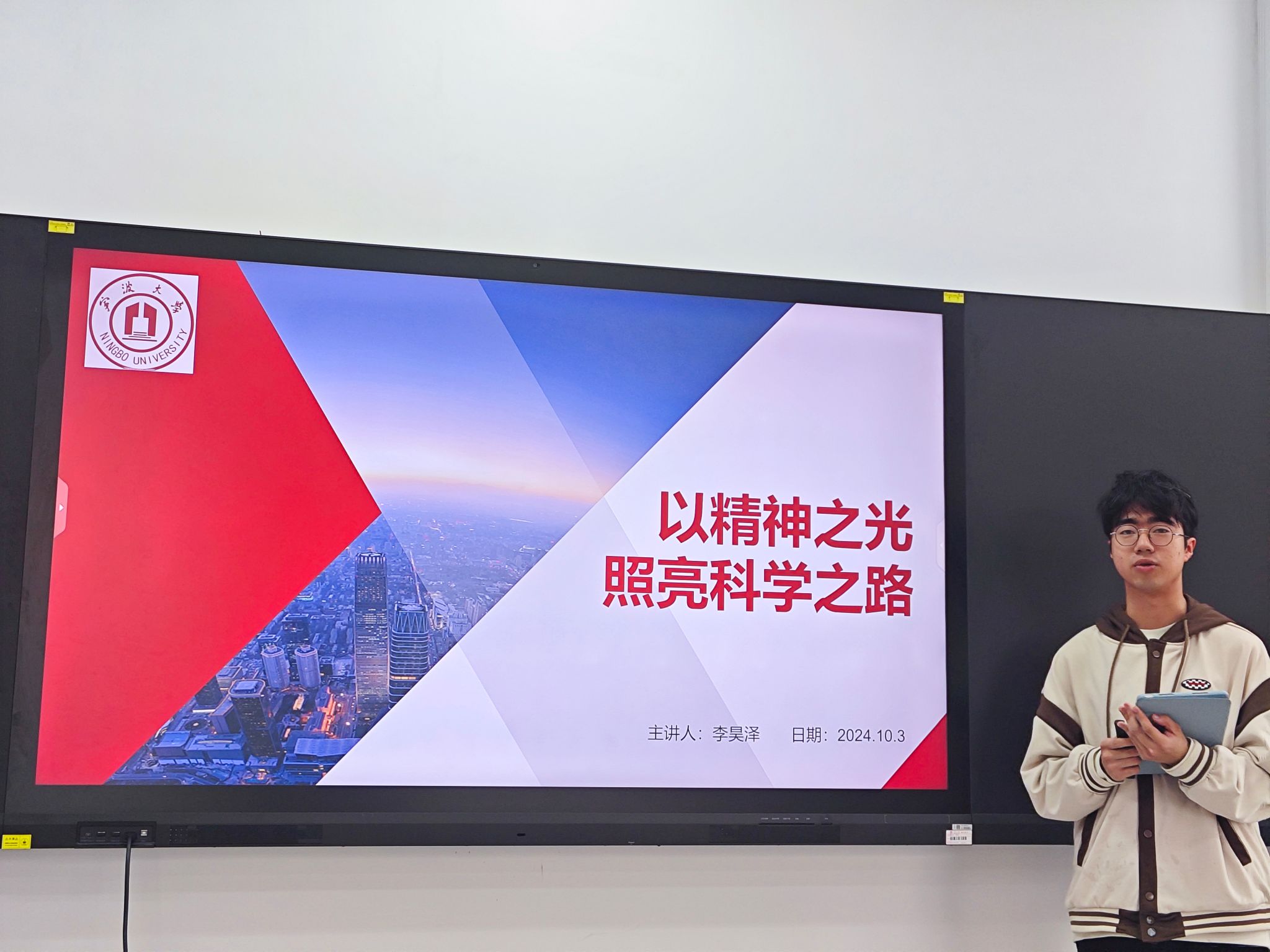 在评比展示过程中,8位物院学子围绕“弘扬科学家精神,喜迎新中国75华诞”的大主题,以现场思政微课的形式,讲述了我国一代又一代科学家如钱学森、屠呦呦、魏敦山、贺贤土等科学家的感人故事,涵盖了生物学家、物理学家、医学家等多个领域的杰出人物,展示了科学家们胸怀祖国、服务人民的爱国精神,勇攀高峰、敢为人先的创新精神,追求真理、严谨治学的求实精神,淡泊名利、潜心研究的奉献精神,集智攻关、团结协作的协同精神,甘为人梯、奖掖后学的育人精神。参赛者在复赛现场充分展现了对“弘扬科学家精神”科普思政教育的深刻理解和独到见解,本次复赛最终决出一等奖1名,二等奖3名,三等奖4名。