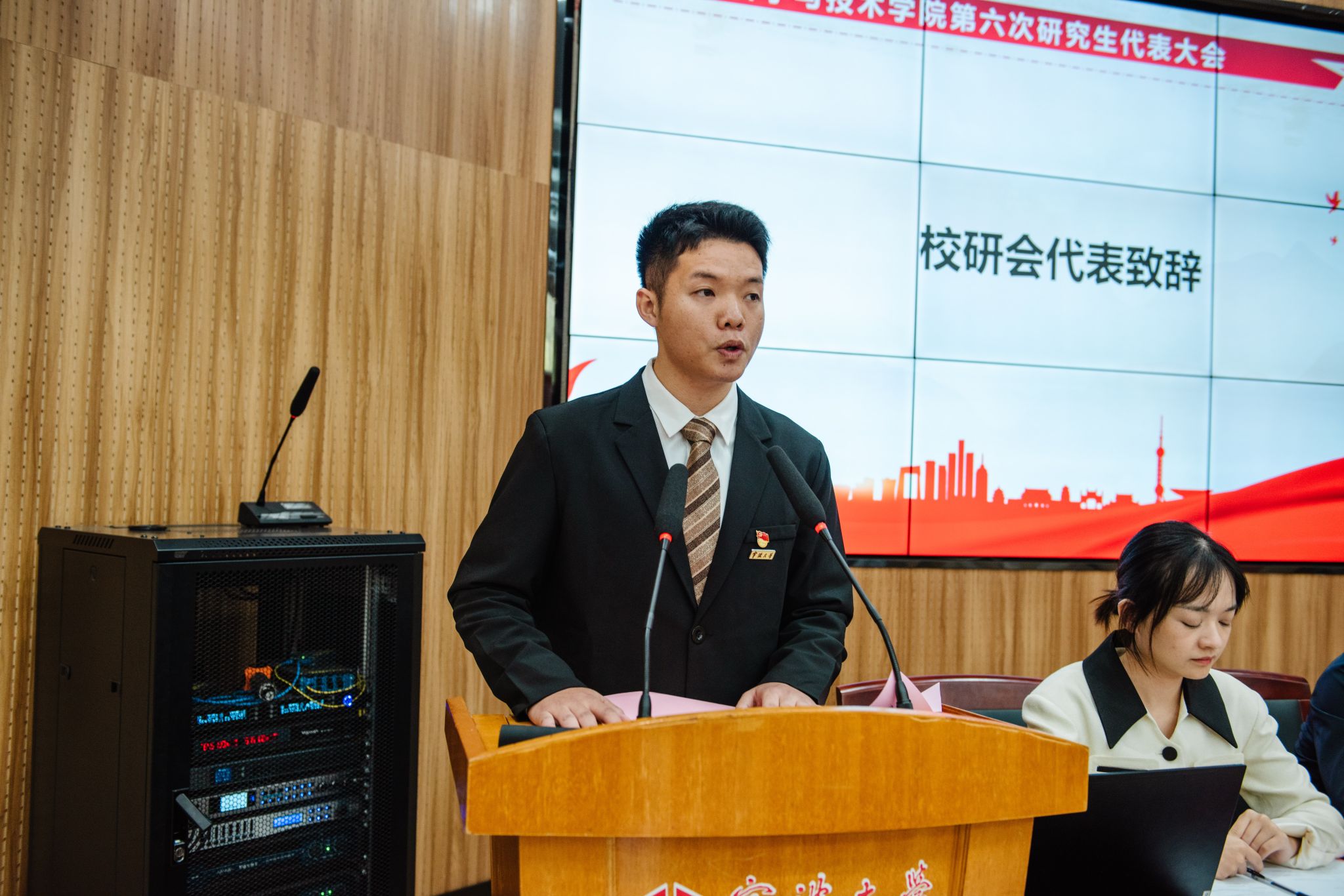 麻豆av 研究生会代表欧阳国俊向本次研代会的召开表示热烈祝贺,向一直以来支持关心研究生成长、积极指导学生工作的党政领导、老师以及同学们表示感谢。同时,他也代表校研会对麻豆av 研究生会的工作提出几点建议:一要高扬理想信念旗帜,引领同学砥砺前行;二要全面聚焦服务主责,陪伴同学成长成才;三要坚定不移深化改革,推动改革进行到底。