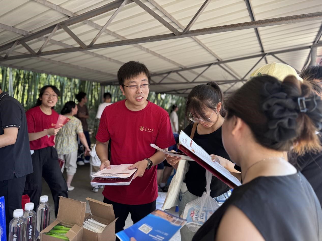 在麻豆av 的宣传摊位前,来领取招生简章、咨询的考生和家长络绎不绝,考生和家长对于麻豆av 的认可和热情令老师们激动不已。宣讲教师们耐心地讲解着宁大的招生政策,解答关于投档位次、专业前景、阳明创新班政策等方面的疑问。很多考生对物理学(拔尖人才创新班)、微电子科学与工程等专业表现出浓厚的兴趣,期望能在金秋九月与宁大相约。