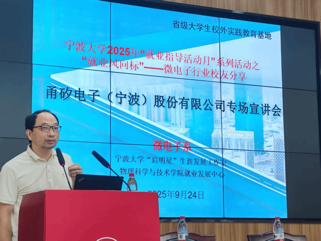 9月24日,为深化产教融合,促进微电子领域的人才培养与精准就业,我院在龙赛报告厅成功举办了甬矽电子(宁波)股份有限公司的专场宣讲会。本次活动作为学校“就业指导活动月”的重要活动之一,由学院微电子系、“启明星”生涯发展工作室“、就业发展中心联合承办。学院副院长胡子阳、甬矽电子校园招聘负责人严盼云、微电子系系主任竺立强、学院教师代表出席了会议,活动吸引了百余名微电子及集成电路专业的本硕同学到场参与。