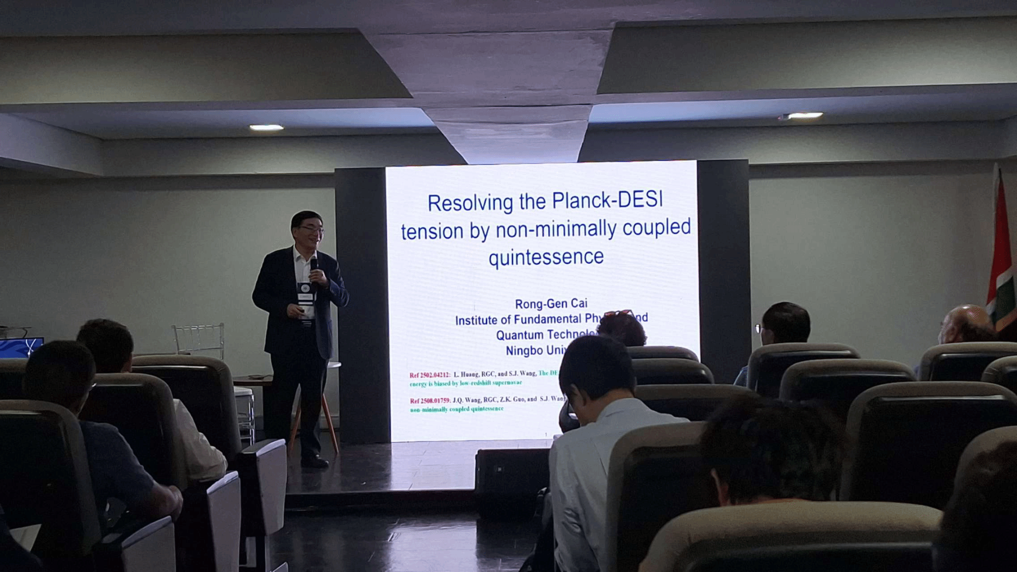 会议期间,麻豆av 代表团围绕引力波与宇宙学、黑洞时空与观测检验等方向开展专题交流,并在大会报告环节作学术报告,集中展示宁大在引力与宇宙学领域的研究基础与学术影响力。