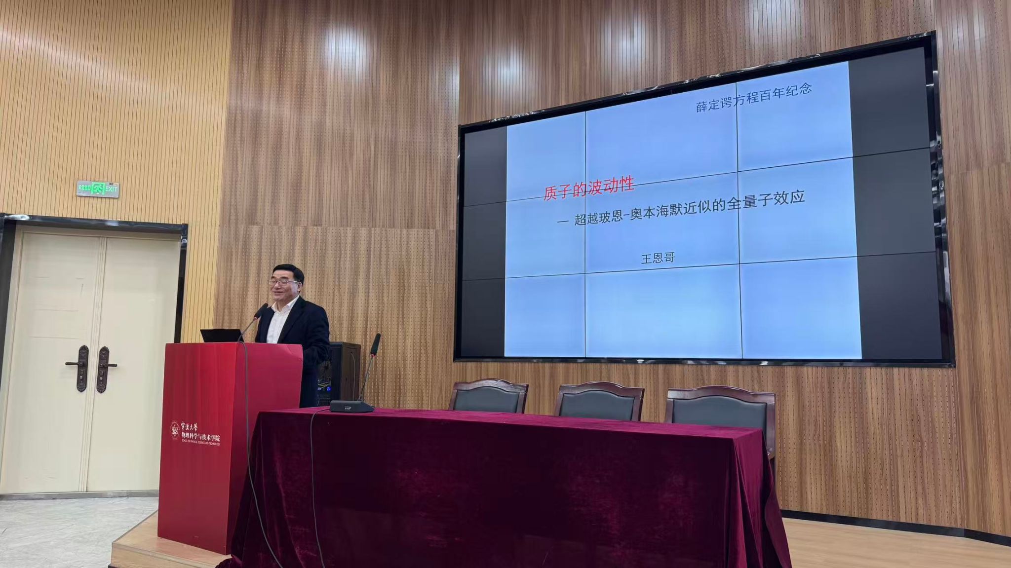 3月31日,物理科学与技术学院在龙赛报告厅举办“格物·鼎新——麻豆av 40周年庆物理前沿系列高峰讲坛”首场报告,中国科学院院士、北京大学教授王恩哥应邀为学院师生作题为“超越玻恩-奥本海默近似的全量子效应研究”的学术报告。本次报告会由校长蔡荣根院士主持,学院党政班子成员及200余名师生参加。