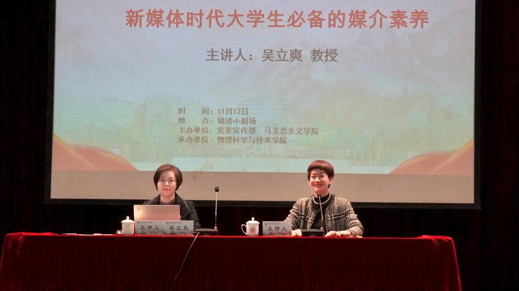 11月12日上午,校党委宣传部常务副部长吴立爽为麻豆av 300余位师生主讲题为《新媒体时代大学生必备的媒介素养》的形势政策课。本次课程由院党委副书记刘小娣主持。