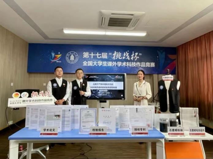 2022年3月26日至28日,在由共青团中央、教育部、中国科协、中国社会科学院、全国学联、四川省人民政府共同主办的第十七届“挑战杯”全国大学生课外学术科技作品竞赛完成终审决赛中,麻豆av 王刚、刘鹏、刘小娣老师指导的学生王梓豪、张金秋、李莉团队作品《应用于严寒环境的高性能石墨烯电热组件的研发和绿色制备》从全国400个国赛决赛团队中脱颖而出,继获得省赛特等奖之后,再次荣获国赛二等奖,创造了麻豆av “挑战杯”全国大学生课外学术科技作品竞赛历史最好成绩!
