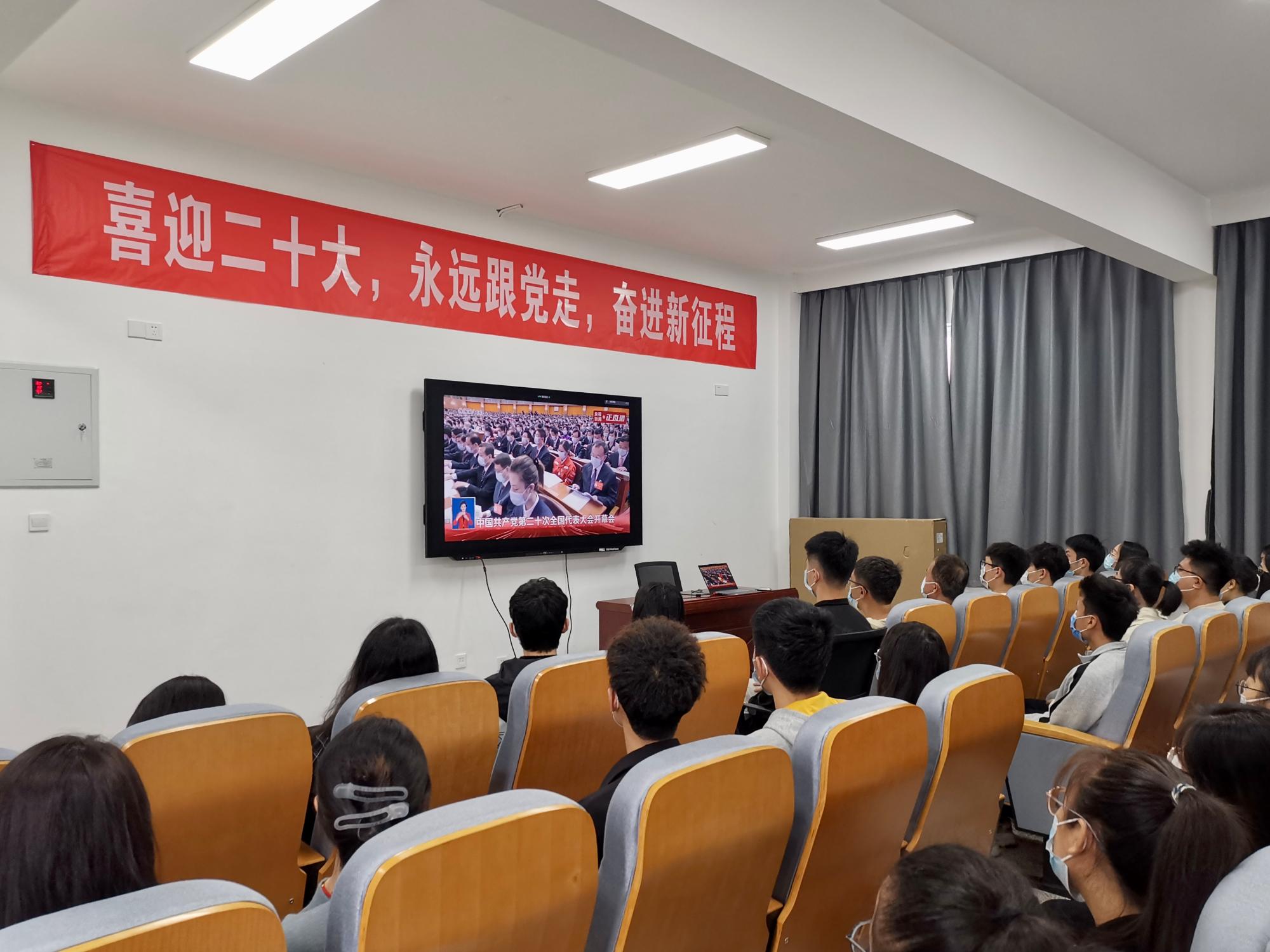 上午10时,学院党委组织领导班子成员、师生党员、团员代表、辅导员等70余人在314会议室集中收看了二十大盛况。各班级党、团支部也结合实际,通过网络、手机收看了开幕会。