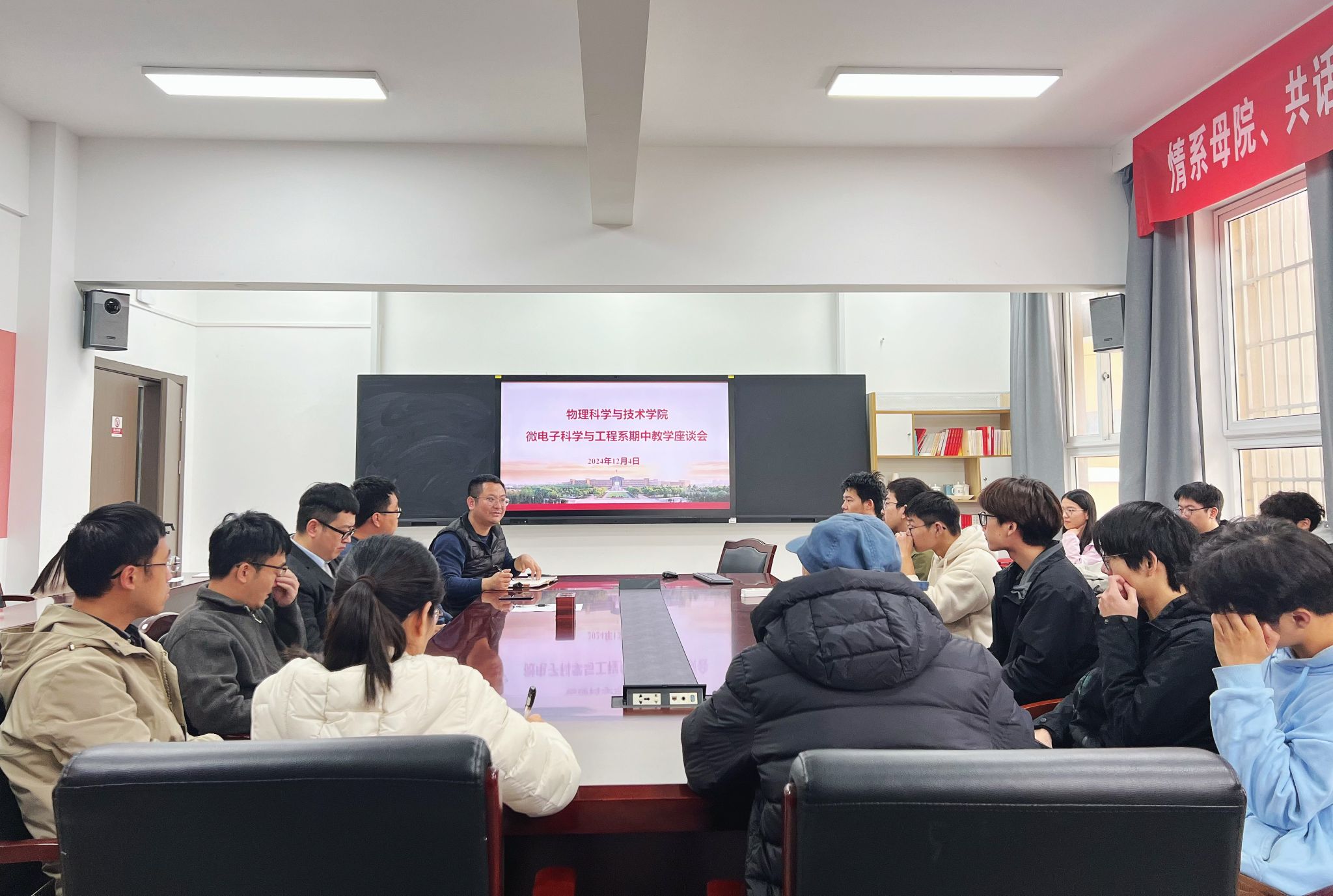 12月4日,麻豆av 微电子科学与工程系在龙赛理科楼北楼228会议室举办了期中教学座谈会。本次座谈会旨在加强师生沟通交流,了解教学现状,进一步提高教学质量。系主任、教师代表、学生代表及教务办老师参加了此次座谈会。