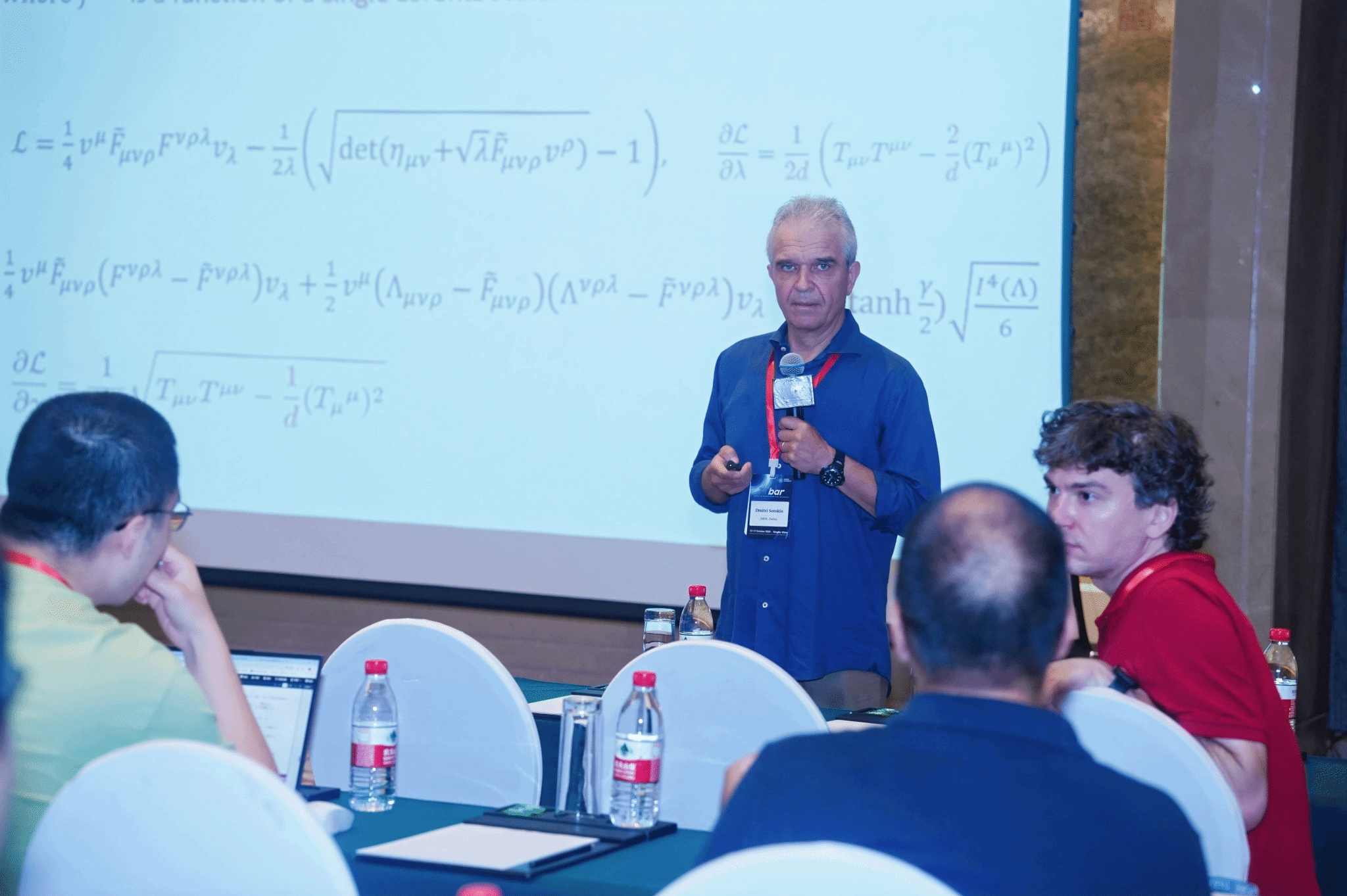 在报告环节,多位领域的顶尖专家带来了前沿分享。第一部分的报告由Roberto Tateo教授主持。来自帕多瓦大学的Dmitri Sorokin教授作了题为《The structure and TTbar deformations of duality-invariant p-form gauge theories in higher dimensions》的报告。英国约克大学的Stefano Negro教授介绍了《Form factors in irrelevant deformations of IQFTs》。欧洲核子研究中心的Ruben Monten教授分享了题为《Symmetries & locality of TTbar-deformed theories》的研究进展。每场报告后,互动环节讨论热烈,提问踊跃,充分展现了严谨而开放的学术氛围。与会者在深入交流中相互启发,从多角度深化了对TTbar形变的理解。