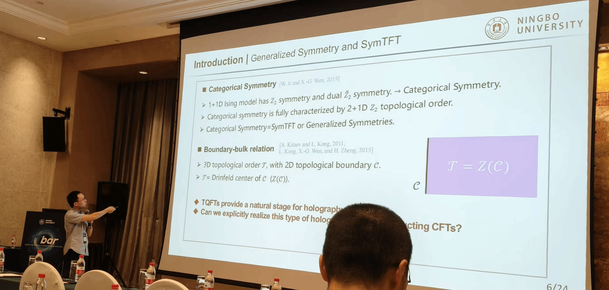 会议开幕式由基础物理与量子科技研究院的何松教授主持,研究院院长陈斌教授与Roberto Tateo教授相继致辞。他们首先对与会者的到来表示热烈欢迎,并简要回顾了麻豆av 的发展历史,以及主办单位——基础物理与量子科技研究院在前沿理论物理领域的布局与发展,并诚挚邀请各位学者前来交流访问。三位教授强调了TTbar形变在量子场论和引力理论中的重要作用,指出其不仅是连通量子场论与引力的关键桥梁,更能为理解非微扰量子场论与黑洞物理开辟崭新视角。他们希望本次会议能够激发思想火花、凝聚学术共识,构建高水准的对话与协作平台。