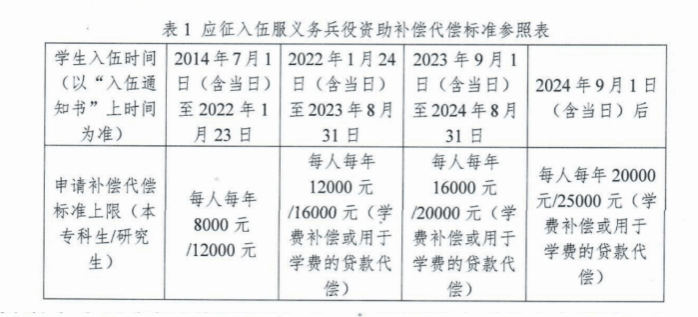 1.学生填写资助申请表: 2025年参军入伍的在校生,应、往届毕业生,登录“全国征兵网”(//www.gfbzb.gov.cn)填写并从网页上打印《应征入伍服兵役高等学校学生国家教育资助申请表Ⅰ》(一式两份,双面打印),连同入伍通知书复印件1份一并上交学院。应届和往届毕业生还需提交毕业证书复印件1份。在校期间获得国家助学贷款的学生,需同时提供《国家助学贷款借款合同》复印件和本人签字的偿还贷款计划书。