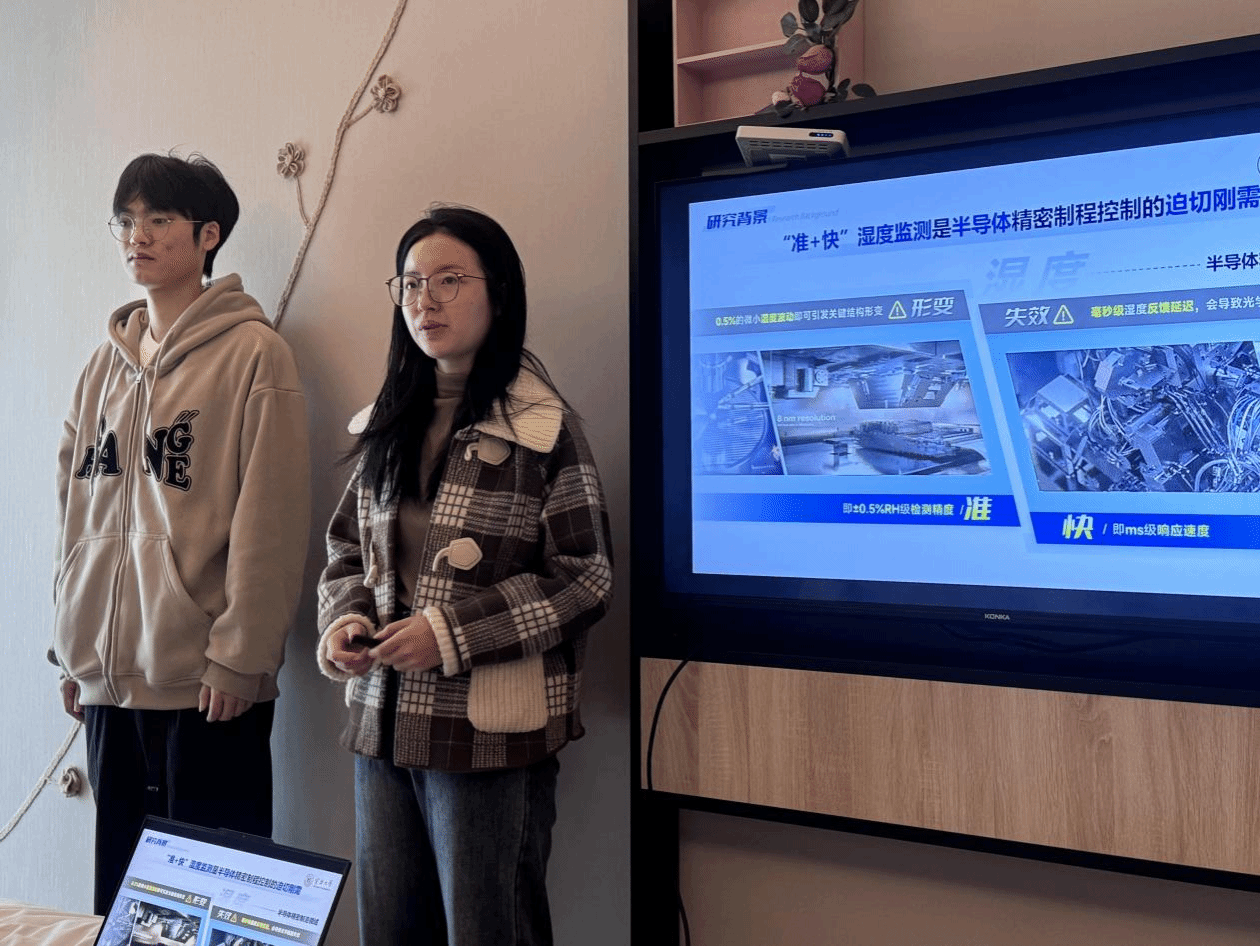 项目简介:湿度是最难精准检测的环境参数之一,目前最先进湿度传感器(电子式)仍不满足半导体等高精尖领域需求。湿敏薄膜是该类传感器的“眼睛”,直接决定性能优劣。本作品以“新机制、新材料、新工艺”为突破点,成功研发NH4+@GO新型湿敏薄膜,较全球最先进同类材料,响应提升100倍至12 ms,精度提升10倍至±0.01%RH。本作品发表SCI论文23篇,申请专利11项;受院士等顶尖专家认可,获国资领投180万元,多场景良好试用。