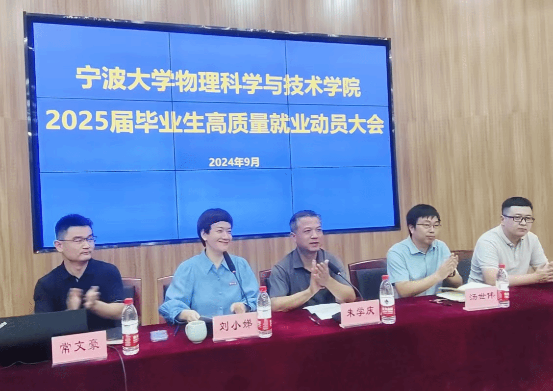 在龙赛报告厅举行2025届毕业生高质量就业动员大会,学院党委书记朱学庆、学院党委副书记刘小娣、物理系主任汤世伟、微电子系副主任王旭、学工办主任常文豪、班主任代表和全体毕业生们参加大会,大会由学院党委副书记副书记刘小娣主持。大会上半场,学院党委书记朱学庆首先发表了题为《志存高远,求实笃行,实现高质量就业》的动员讲话,他指出高质量就业不仅仅是找到一份工作,更是要找到一条适合自己的职业发展道路,...