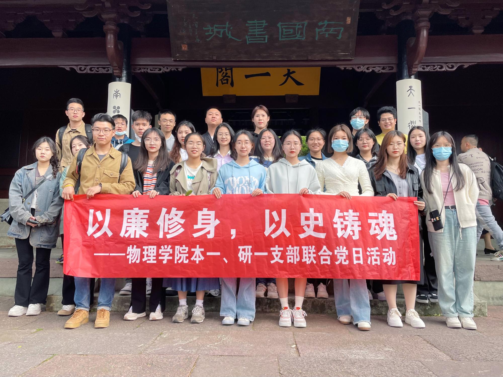 为迎接红五月和“510·我要廉”廉洁文化宣传日,进一步加强党员同志红色精神传承和廉洁文化教育,同时落实推进本一支部“志愿服务,行为师范”和研一支部“本硕联动,共促成长”的支部特色建设,4月21日,物理学院本科生第一党支部和研究生第一党支部联合组织师生党员、青年团员代表30余人赴宁波天一阁博物院开展“以廉修身,以史铸魂”主题党日活动。同志们浏览阁内风景、分享先辈革命故事、品读廉政诗句,传承清正文化,赓续红...